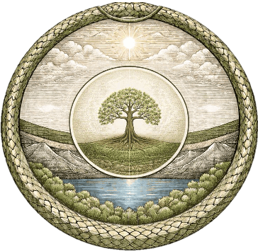 The tree stands between the two realms, receiving invisible order from one and expressing visible form from the other.