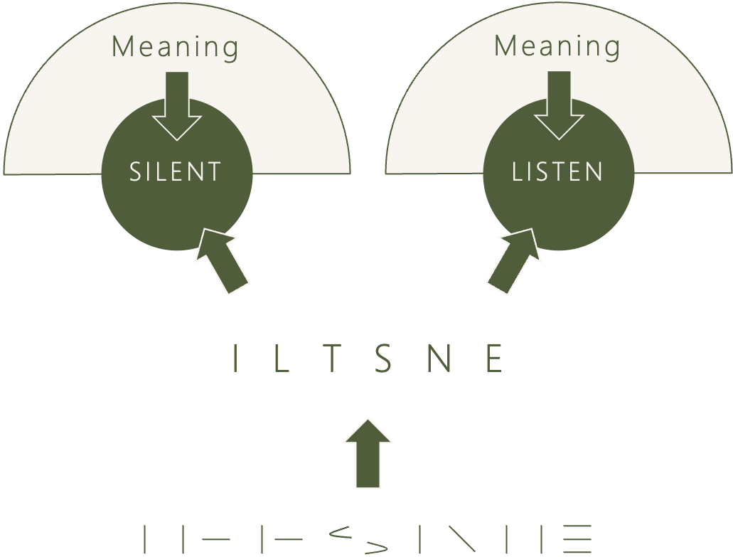 At its most basic, the alphabet is nothing more than a set of simple shapes. Tiny lines and squiggly curves that make up the letters A, B, C, and so on. Viewed purely materially, these are just marks on a page.